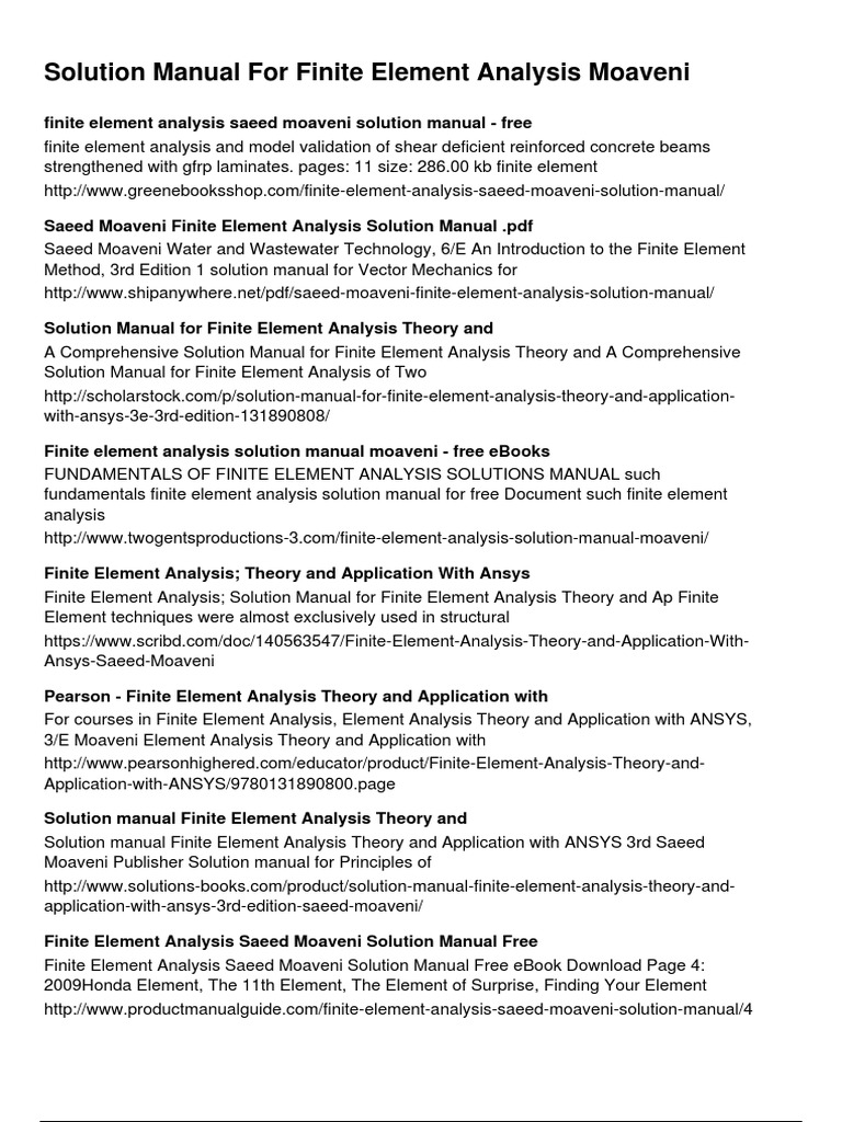 Solution Manual For Finite Element Analysis Moaveni Pdf Finite Element Method Teaching Mathematics